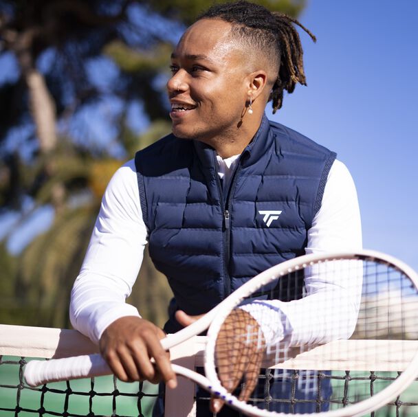 Дві бокові кишені на блискавці доповнюють цю куртку без рукавів, щоб зберігати м’ячі під час розминки або особисті речі в повсякденному житті.