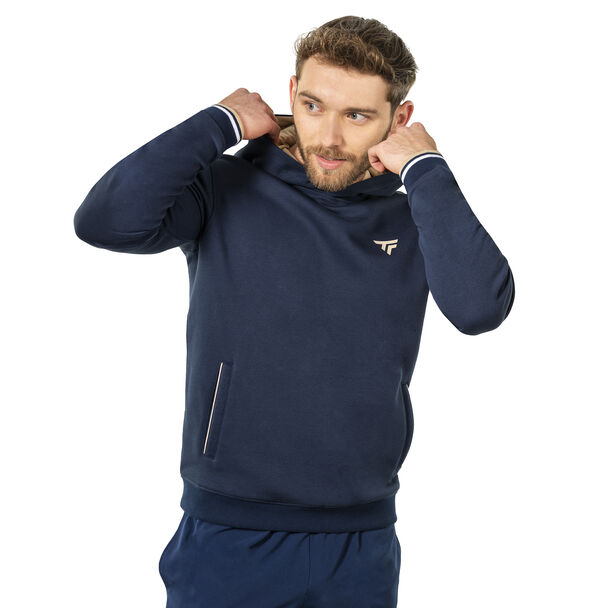 Пісочний колір внутрішньої частини капюшона створює ледь помітний контраст з темно-синім, роблячи цю толстовку унікальною та стильною.