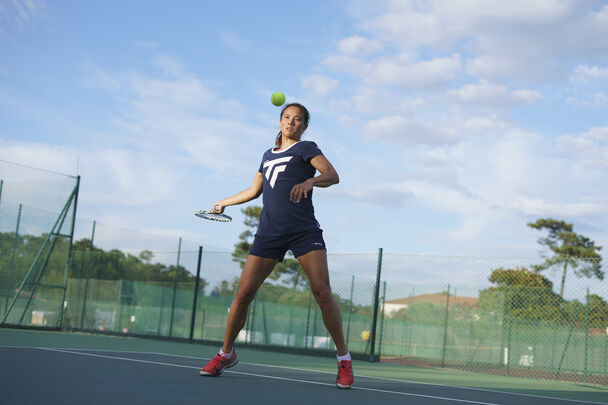 ₴938 Ідеальна футболка для проведення дня на корті або поза ним. Трикотаж із 100% бавовни забезпечує м’якість і комфорт при контакті зі шкірою. Модний образ із круглим вирізом у білу рубину, що поєднується з логотипом, надрукованим спереду, та лого на рукаві. Прямий крій, комір в рубчик для ідеальної посадки, логотип на рукаві спереду, ззаду та зліва, триколірна стрічка внизу ліворуч.