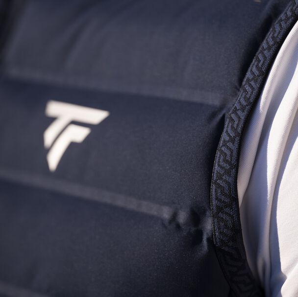 Дві бокові кишені на блискавці доповнюють цю куртку без рукавів, щоб зберігати м’ячі під час розминки або особисті речі в повсякденному житті.